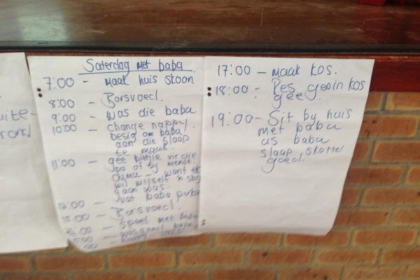 • We also have a programme called “voete-vat” where we literally walk through different neighbourhoods to visit pregnant woman & woman with babies and also teens. We visit with them and counsel with them in their different needs.